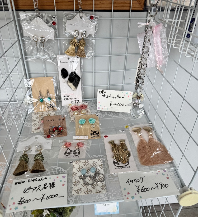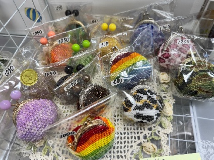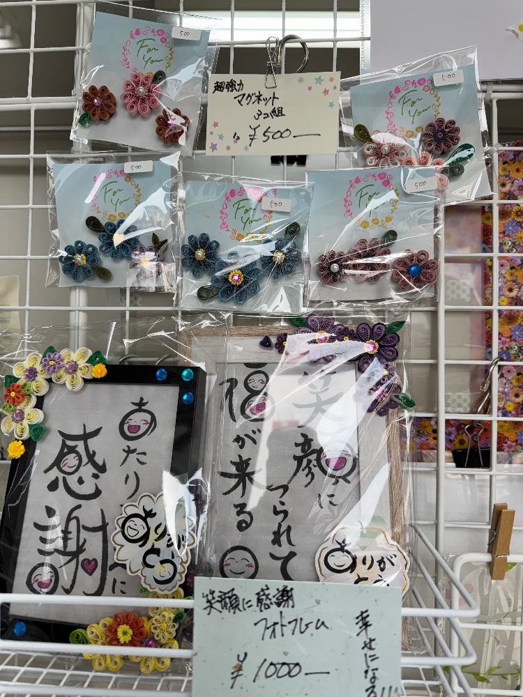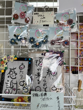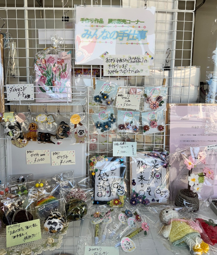 店内の受付台の左側にハンドメイド作品の展示販売コーナーがあります。素敵な女性たち(お母さん、お姉さん)の手作りの品がたくさんあります。お土産やプレゼントにぜひ!